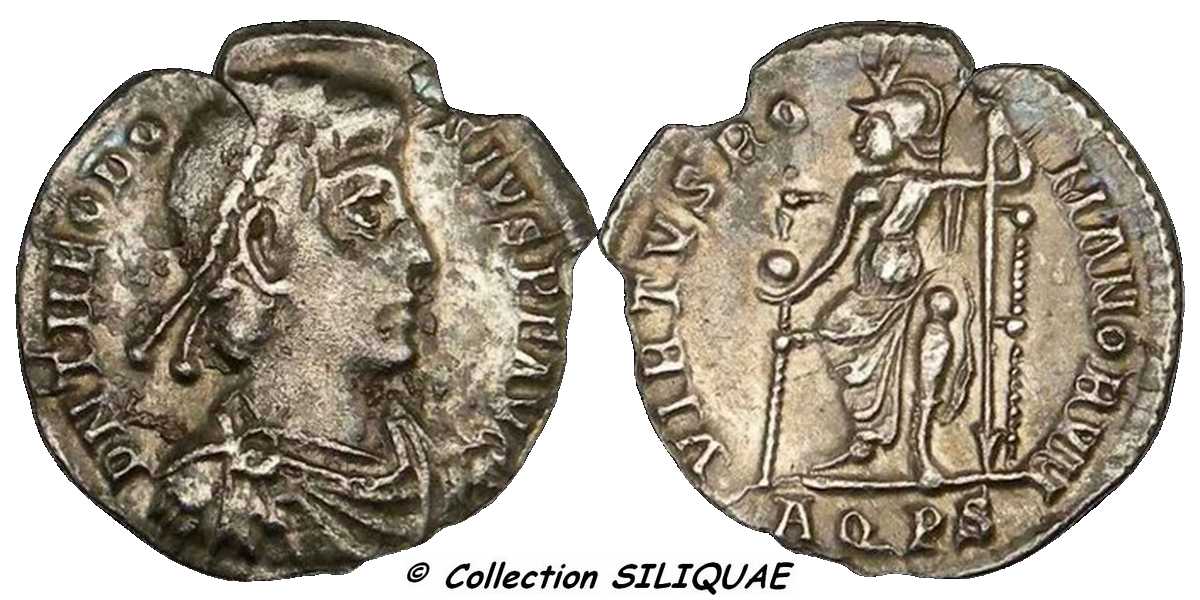 Rome casquée assise de face, tête à gauche, sur un trone, tenant dans sa main droite un globe et une lance renversée dans la main gauche.