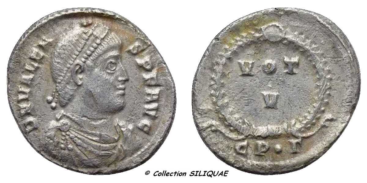 R/ VOT/V//CP•G Votis quinquennalibus. Vœux pour le cinquième anniversaire de règne